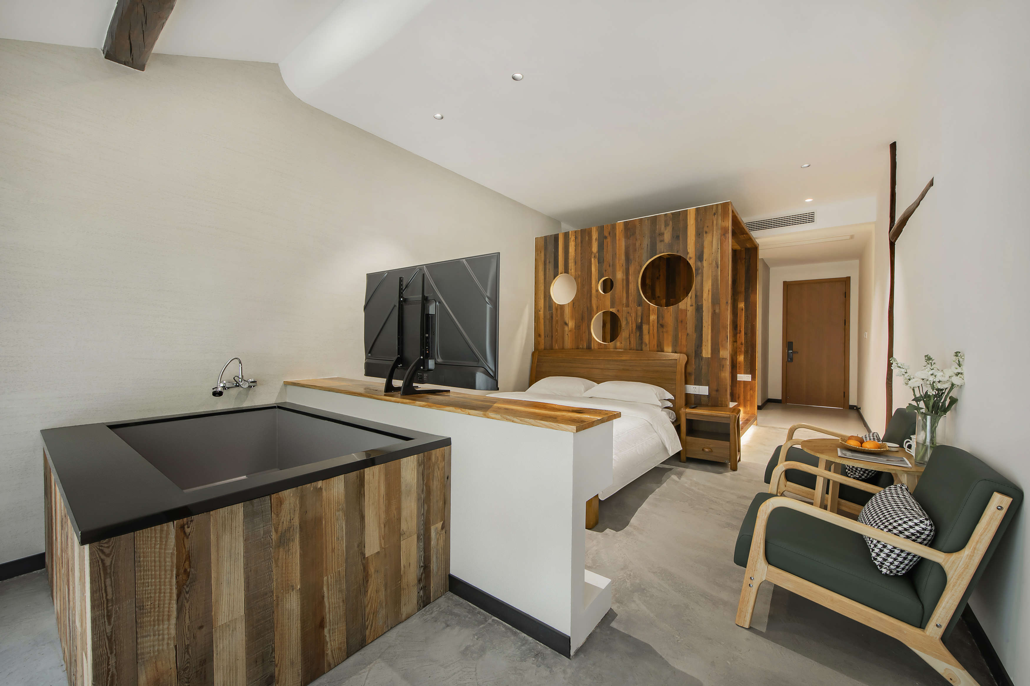 山景木屋家庭房-山景陽台+景觀品茗茶台+私湯泡池